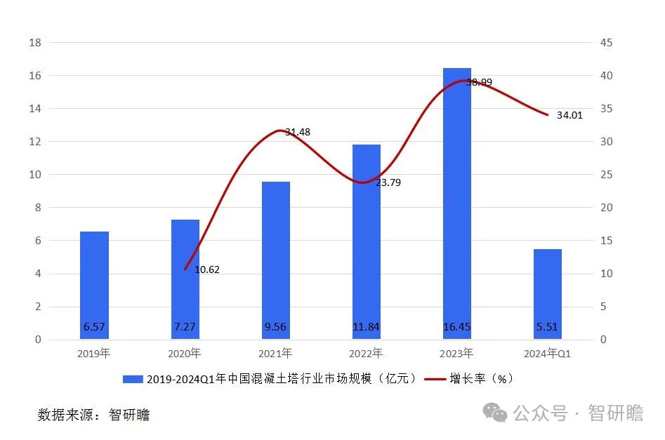 图表:2019-2024Q1年中国混凝土塔行业市场规模